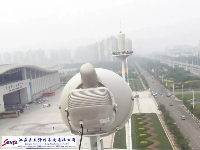 天津梅江會展中心*世界達沃斯經濟論壇會場,50米高桿燈,景觀照明+信號裝置+監控功能,由江蘇森發榮譽智造!